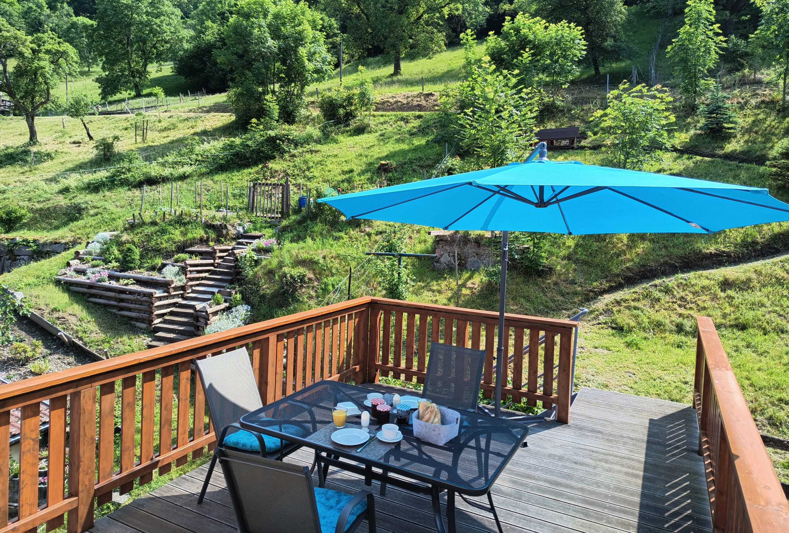 Sie befindet sich über der Wohnung „Le Chamois“ und hat einen eigenen Zugang über eine großzügige Terrasse.